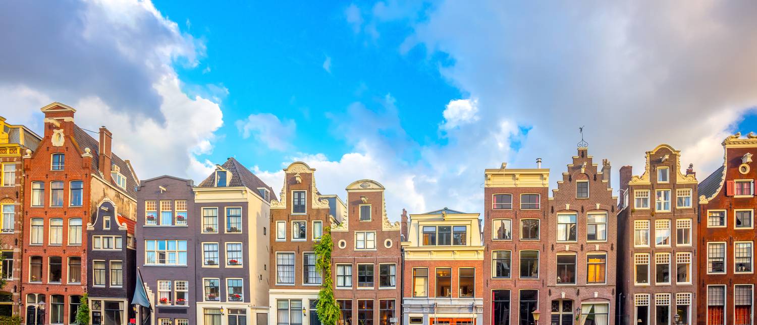 Foto: Panoramablick auf die berühmten Grachtenhäuser von Amsterdam.