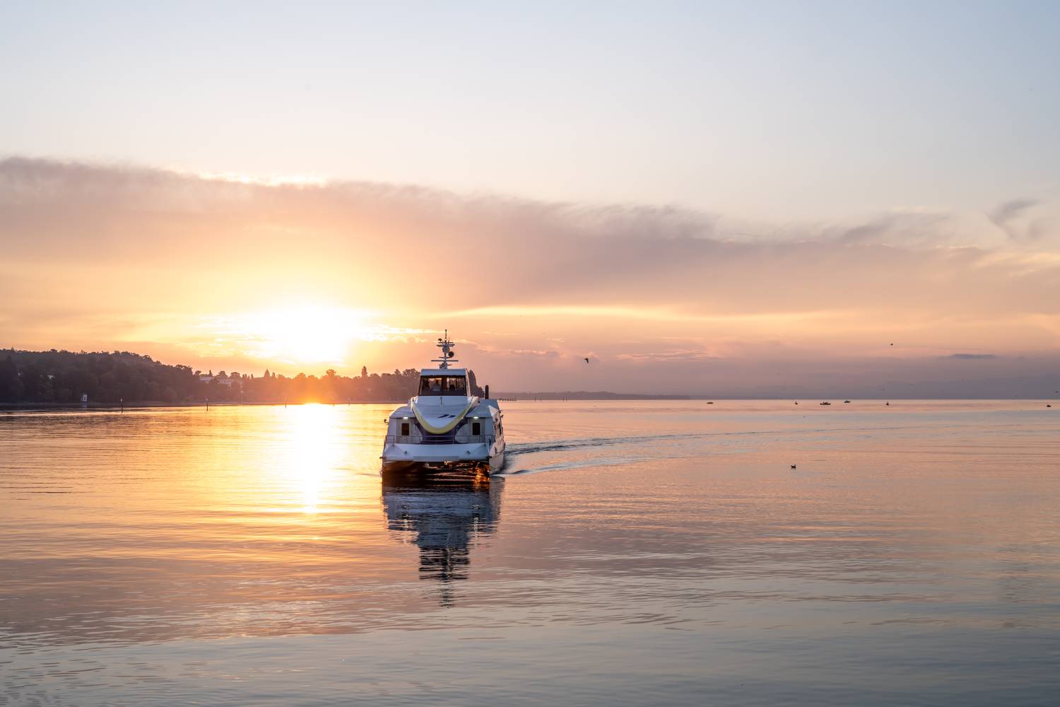Foto: Katamaran auf dem Bodensee in den frühen Morgenstunden.