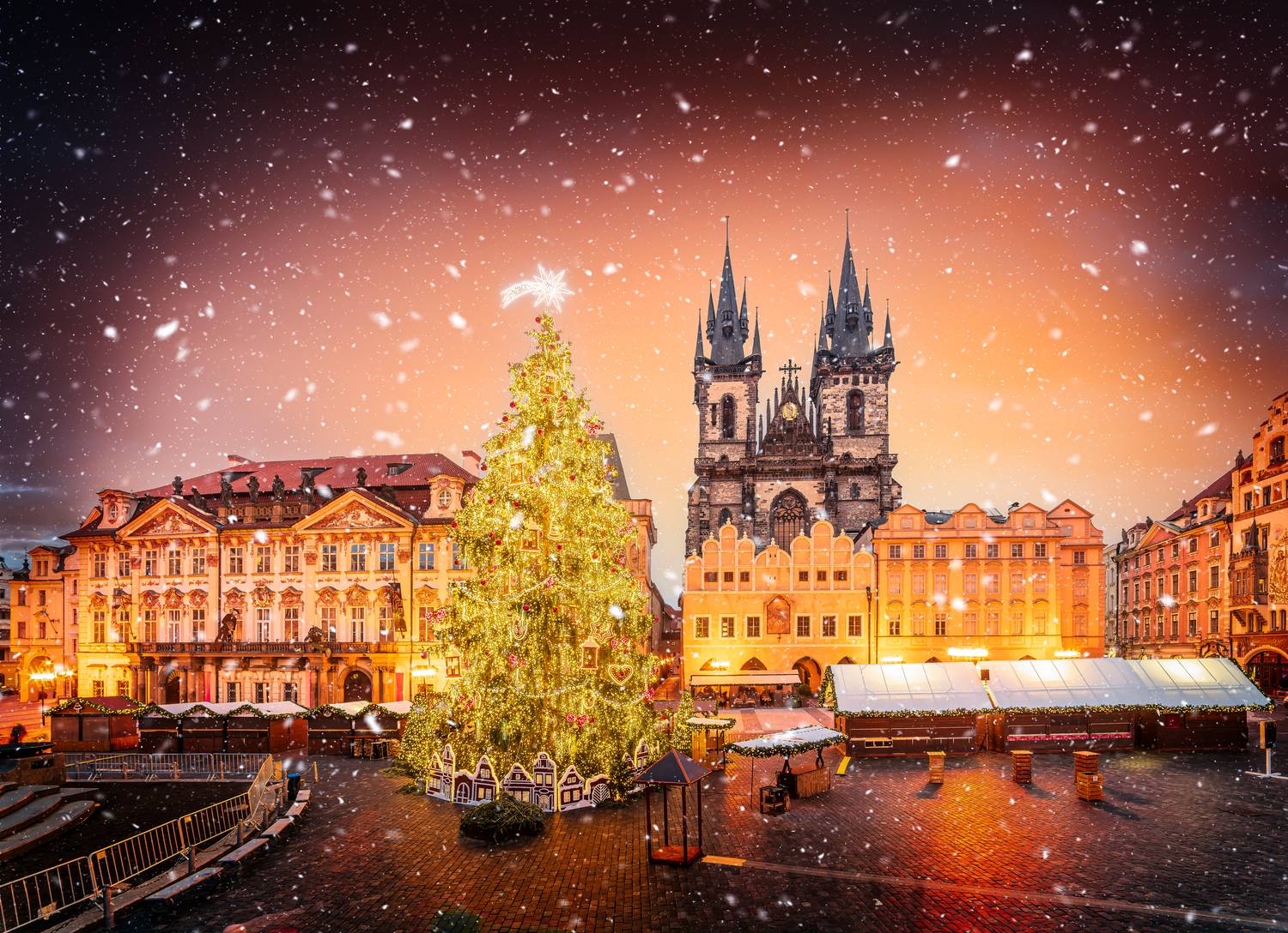 Jedes Jahr verwandelt sich der Altstädter Ring in Prag, Tschechien, in einen magischen Weihnachtsmarkt, eingebettet in die historische Kulisse der Altstadt und umrahmt von funkelnden Lichtern. Berühmt für seine festliche Atmosphäre, vereint der Markt traditionelle tschechische Bräuche mit modernem Flair. Unter der beeindruckenden Teynkirche und gotischen Türmen erstrahlt ein grosser Weihnachtsbaum als zentrales Highlight. Besucher können herzhafte tschechische Spezialitäten wie Trdelník und Medovina geniessen und durch Stände mit handgefertigtem Schmuck und Glas schlendern. Ein Besuch hier bietet ein unvergessliches Erlebnis voller historischem Charme und festlicher Freude, ideal, um die Adventszeit in Prag zu zelebrieren.