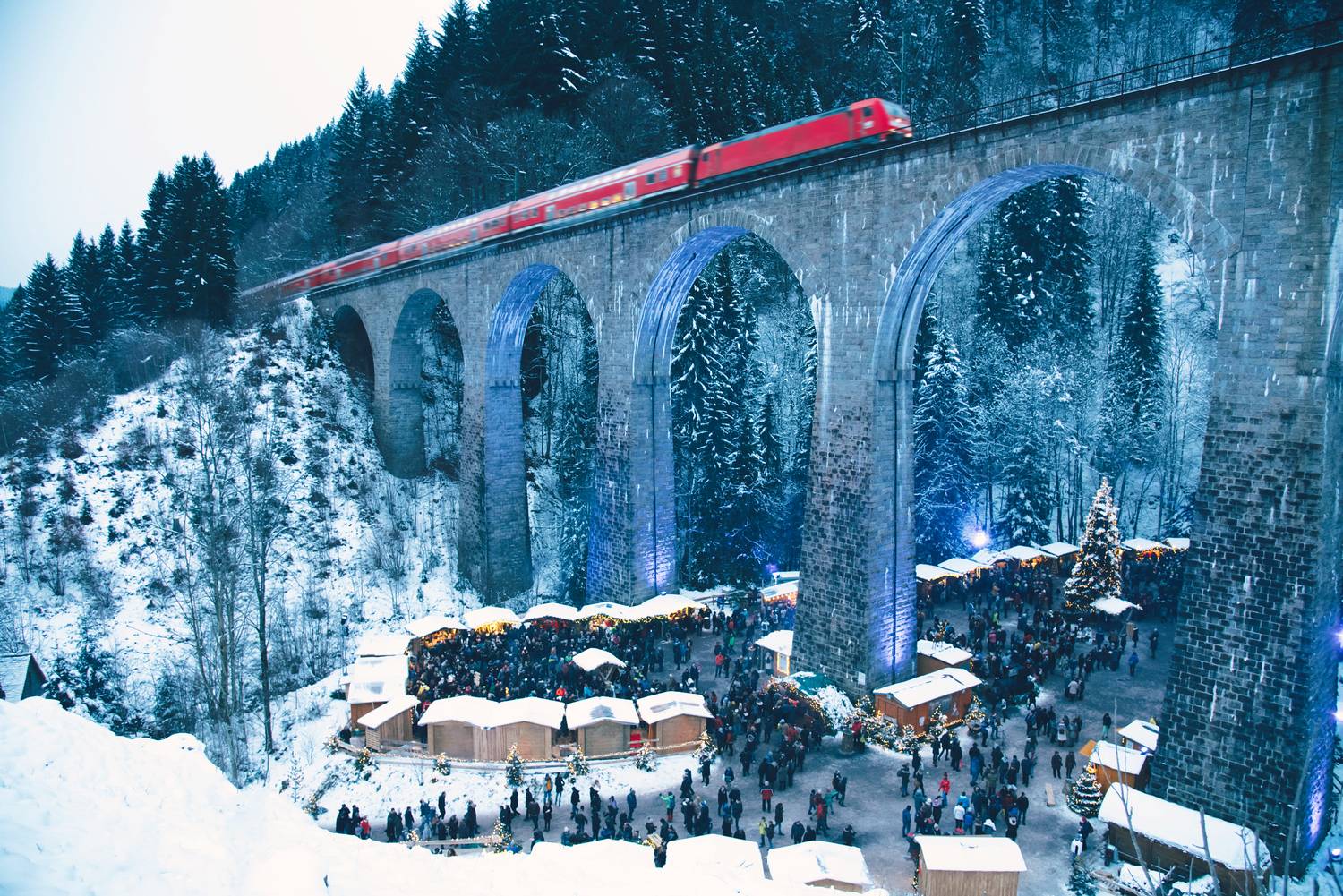 Ravennaschlucht (Deutschland, Schwarzwald): Ein echter Geheimtipp: Unter einem imposanten Eisenbahnviadukt mitten im Schwarzwald entsteht jedes Jahr ein Weihnachtsmarkt wie aus einem Winterfilm. Lichter, Musik und regionales Handwerk schaffen eine einmalige Atmosphäre – besonders bei Einbruch der Dunkelheit.