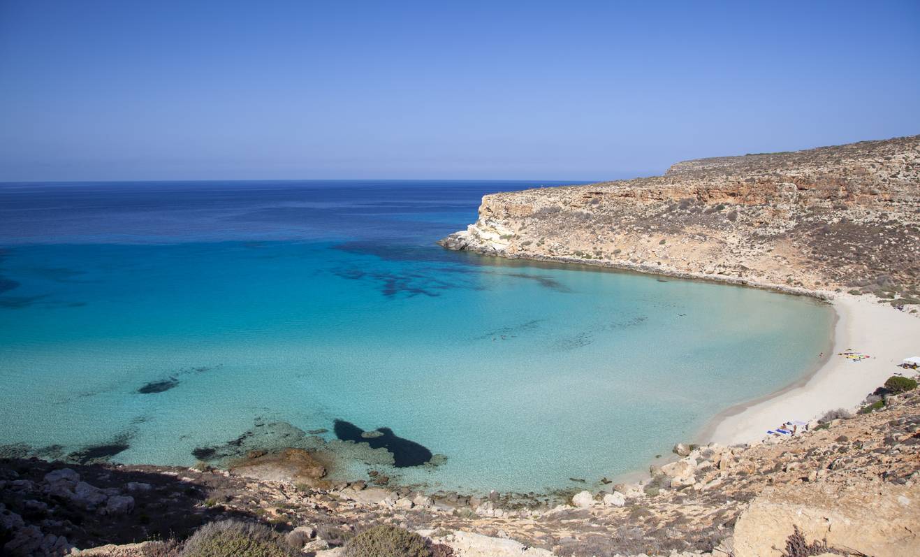 Foto: Feiner, heller Sand und türkisfarbenes Wasser machen die Spiaggia dei Conigli auf Lampedusa zu einem der schönsten Strandparadiese Italiens.