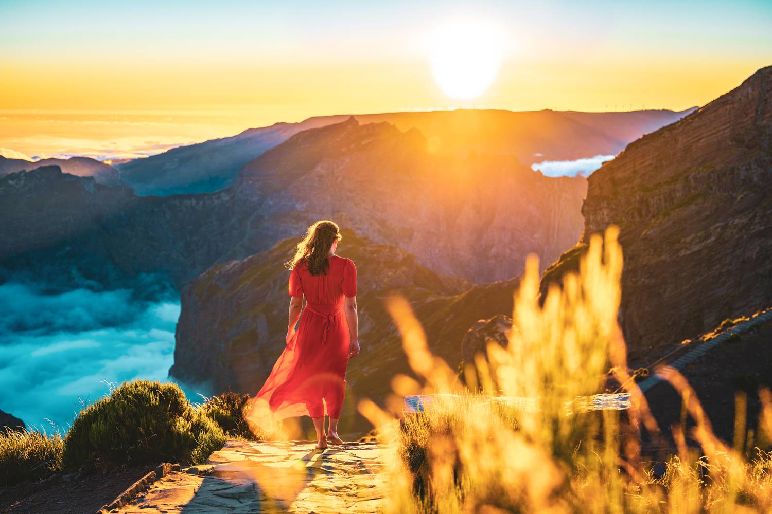 Foto: Goldenes Licht über rauen Felsen: der legendäre Wanderpfad zwischen Pico do Arieiro und Pico Ruivo.