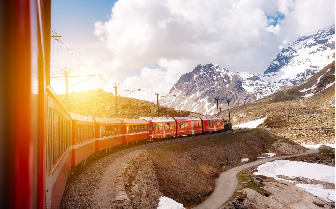 Foto: In den Alpen gibt es Bahnstrecken, die durch einige der schönsten Landschaften Europas führen – mit Blick auf Berge, Täler, Seen und kleine Dörfer.