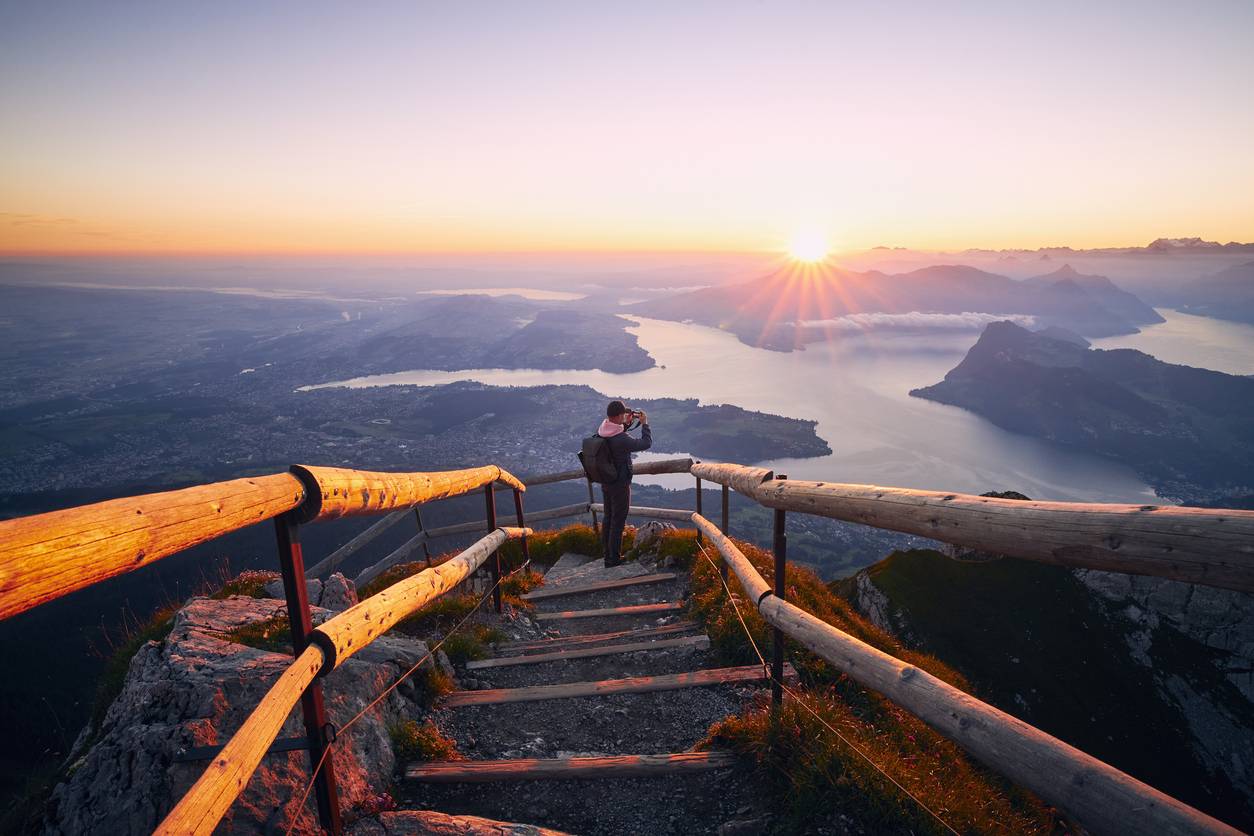 Foto: Wie wäre es mit einem Sonnenaufgang auf einem Gipfel? Vom Berg Pilatus bei Luzern hat man eine traumhafte Aussicht auf den Vierwaldstättersee und die umliegende Berglandschaft.