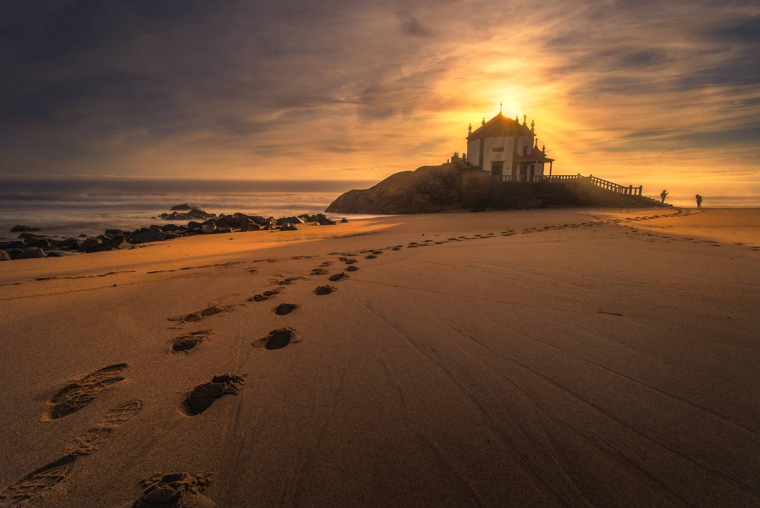 Foto: Die Kapelle Senhor da Pedra am Strand von Miramar – ein magischer Ort, an dem der Atlantik die Felsen umspült.