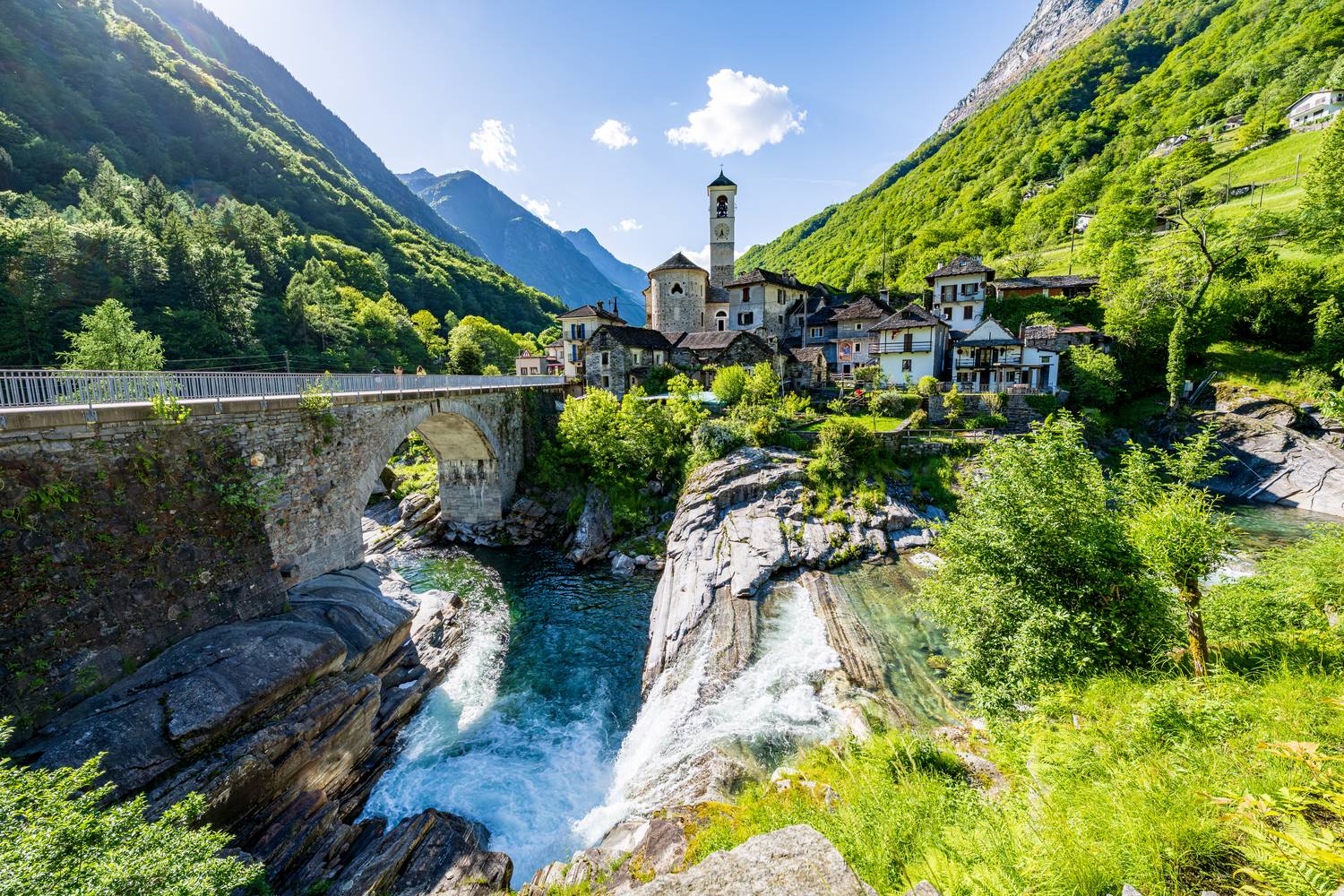 Foto: Lavertezzo im Valle Verzasca: Postkartenidylle am smaragdgrünen Fluss.