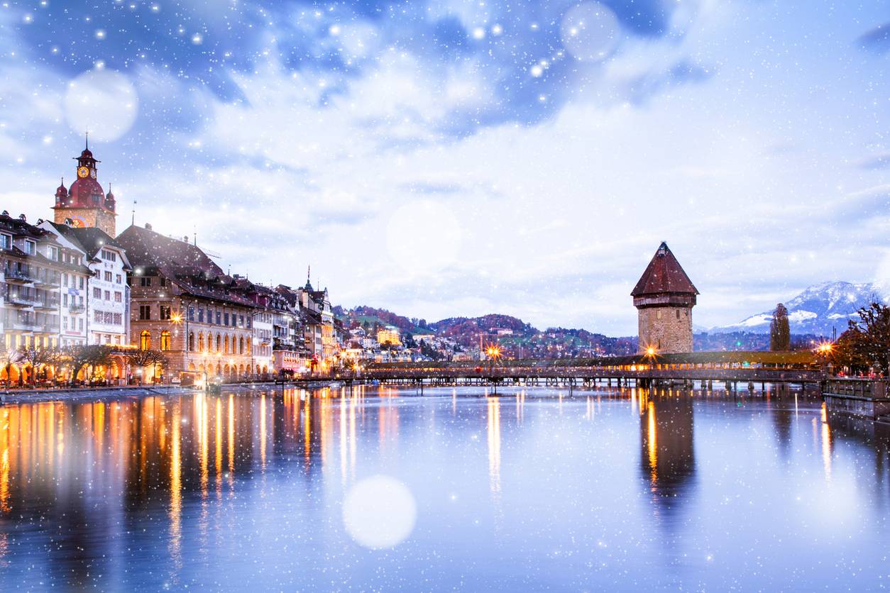 Foto: Die märchenhafte Kulisse der Luzerner Altstadt mit der Kapellbrücke und dem Vierwaldstättersee machen den Luzerner Weihnachtsmarkt zu einem ganz besonderen Erlebnis.