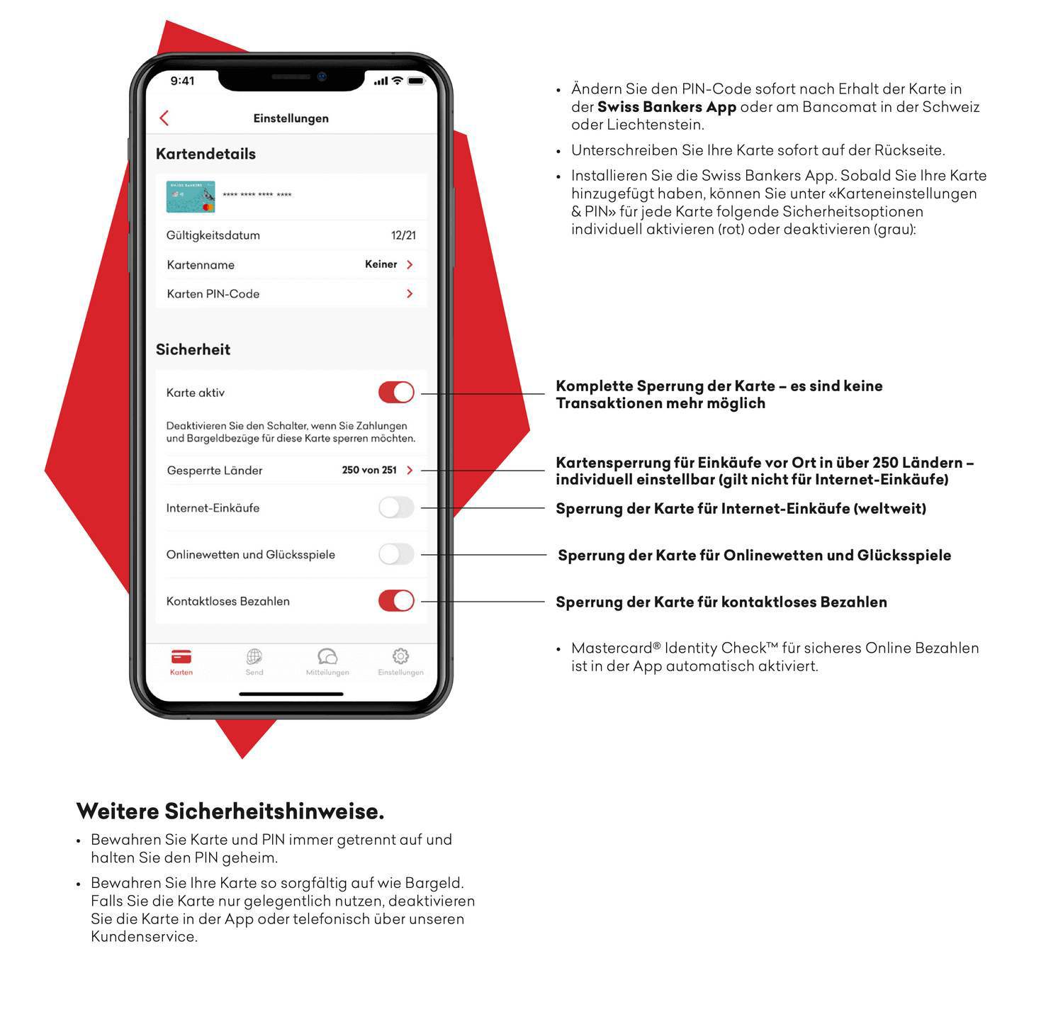 Für die maximale Sicherheit Ihrer Karten und Einkäufe, schützt Sie die Swiss Bankers App mit zahlreichen Sicherheitsvorkehrungen und Vorteilen. App-Nutzer erhalten schnellere und kostenlose Hilfe über spezielle Support-Bereiche in der App. Sie haben die App noch nicht? Laden Sie die App jetzt hier herunter und erleben Sie den Unterschied.